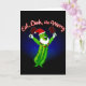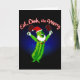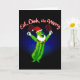 Carte de Noël pour le pickleball amusant. Mangez Dink and Be Joyeux avec le pickle de caricature avec des pagaies à boules de cornichon, le chapeau de Père Noël et la barbe.