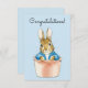 Pierre le lapin dans sa veste bleue, assis dans un pot en terre cuite.