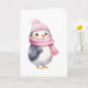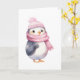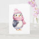 Carte Pingouin d'aquarelle en écusson rose