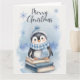 Cette adorable illustration de Noël aquarelle présente un mignon manchot portant un casquette et une écharpe bleu douillet, assis au-dessus d'une pile de livres. Entouré de délicats flocons de neige et d'un arrière - plan bleu enneigé doux, il est un cadeau parfait pour les amateurs de livres, les amateurs d'hiver, ou comme décor festif. Idéal pour les autocollants, les affiches, les cartes de voeux et d'autres produits de vacances !