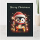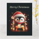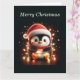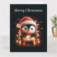 Carte Pingouin mignon enveloppé dans les lumières de Noë
