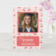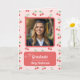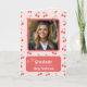 Célébrez votre diplômé avec cette carte de graduation personnalisée avec un joli arrière - plan motif rose cerise et un espace réservé photo personnalisé. Parfait pour le lycée, l'université ou toute célébration de remise de diplômes, ce design mignon et tendance ajoute une touche douce à votre message de félicitations. Customisez facilement avec votre propre texte et image.