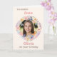 This cute birthday card can be personalized with your cousin's name, and a favorite photo. Your chosen photograph will appear in a pretty floral surround with a watercolor effect. The text at the top of the card is 'To a wonderful Cousin', with her name below the picture and 'on your birthday' words underneath. Inside the card is the classic greeting 'Happy Birthday'. In pastel pink with serif and script typography, the card has a traditional and timeless look. A stylish and elegant choice for your cousin on her special day.