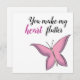 Une carte de la Saint-Valentin élégante avec un papillon rose délicat. "Tu fais bouger mon coeur" Sais-tu déjà à qui tu veux donner ça ?