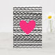 This design shows a large fuchsia heart in the center, standing out right away. The heart looks smooth and solid, like it’s floating on the page. Behind it, the background is filled with black wavy horizontal lines on a white base, and the lines have a slightly grainy look. The strong pink heart against the black-and-white pattern gives the card a modern, high-contrast feel that still reads as romantic 💘. There isn’t any text on the front, so the heart and the pattern do all the talking ❤️. Overall, it feels like a simple way to say “I care about you” without needing extra details.