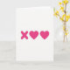 This card shows a plain white background with three hot pink symbols lined up across the center. First there’s a rounded “X” that reads like a kiss, followed by two matching heart shapes. The shapes are smooth and simple, with sharp edges and no extra patterns, so your eyes go right to the message. There isn’t any other scene or character, which makes the design feel direct and easy to understand. There’s no written phrase on the front—just the “X” and the hearts acting like the message on their own. It feels meaningful because it says “I care about you” in a straightforward way, whether you’re giving it to a partner or a close friend 🥰. The hot pink color adds warmth and a little excitement without needing anything else ❤️. Hope it helps you share your Valentine’s Day feelings in a kind, honest way.
