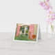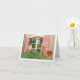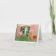 This "Thinking Of You" greeting card features window with pink shutters and red flowers. Card is blank inside for your own message.