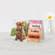 Un tel mignon et adorable carte de bien pour faire se sentir mieux avec un clocher taureau avec une fleur orange vif sur la tête avec une bordure florale aquarelle et trois bandes colorées avec les mots "ENVOYER" "GUÉRIR" "VIBES" sur le devant sur un arrière - plan texturé rose et orange. A l'intérieur de la carte on peut lire "Va-t'en bientôt". Les mots à l'avant et à l'intérieur peuvent être laissés tels quels ou personnaliser et ajouter les vôtres.