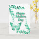 plantes encadrant le haut à gauche et le bas à droite avec un papillon en bas à gauche de l'image avec le masage "Joyeuse Fête des mères" au milieu, tout en vert avec un arrière - plan blanc par martinspixs.