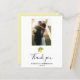 Carte Plat Mariage Citron Jaune Budget Express votre gratitude avec élégance et charme en utilisant notre Carte de remerciements Mariage économique, avec votre photo mariage chère, citron et police calligraphie magnifiquement travaillé. Créée avec soin, cette carte de remerciements offre une façon sincère d'apprécier l'express à vos proches. L'inclusion de votre photo mariage ajoute une touche personnelle, vous permettant de partager une mémoire chère de votre journée spéciale. La police calligraphie ajoute une touche de sophistication et de raffinement à votre message de remerciement. Ses courbes délicates et ses lignes gracieuses transmettent chaleur et sincérité, faisant de chaque carte un véritable coeur. En coque, vous avez besoin de personnalisation, soyez libre de contacter le magasin