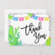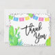 Une carte de remerciement plate de douche de mariée fiesta mexicaine. Le design présente un cactus aquarelle, des bannières papel picado et une police de calligraphie moderne.