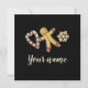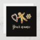 Illustration d'un homme en pain d'épice mignon, d'un cœur en bonbon et d'un flocon de neige avec un modèle de texte. Cliquez sur personnaliser et changez le texte en un nom ou un mot.