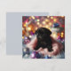 Carte plate de Noël 5,25" x 5,25 avec un adorable chiot carlin noir niché dans une couverture confortable, joyeusement entouré d'ornements colorés !