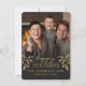 Le carte photo élégant de vacances de Noël avec le houx de feuille d'or de faux s'embranche et les baies et le recouvrement de gris de gradient. Recommandé pour les photos foncées. NOTE : cette conception est une image plate simulée pour regarder comme elle a un miroitement métallique.