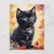 Carte plate de scène d'automne avec chaton noir