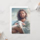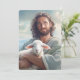 Cette carte plate est illustrée d'une photo artistique de Jésus tenant un agneau.