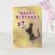 Un mignon chat sur ses pattes postérieures jouant avec un message d'anniversaire épelé dans des ballons. Une belle carte pour les amateurs de chat.