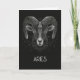 Carte de voeux pliée sur mesure avec intérieur vierge avec constellation de signe zodiaque Aries avec typographie mystique "Aries" sur arrière - plan noir.