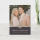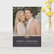 Célébrez votre premier Noël en couple avec notre Carte pliée de Noël Couples First. L'avant présente votre photo de couple adorée encadrée d'un élément de design métallique brossé, tandis qu'une bannière sombre ornée d'un délicat flocon de neige dit : "Joyeux Noël Vous envoyant de la joie et un plaisir festif." Ouvrez la carte pour révéler un intérieur clair avec un message personnalisable et signature de script, créant une touche personnelle pour vos salutations de vacances. Le fond est foncé avec un petit flocon de neige dans les tiers inférieurs, assurant la continuité de l'élégance du design. Cette carte pliée offre une façon mémorable de partager votre amour et votre joie pendant cette saison spéciale des Fêtes.