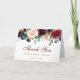 Carte pliée de remerciement de mariage bleu marsala burgundy floral aquarelle or