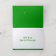 Cette carte de papier vert est une excellente façon d'envoyer des voeux Joyeux Noël. La carte présente un design d'arbre moderne et est présentée en feuille d'or véritable. Customisez avec le texte souhaité sur le devant et un message spécial à l'intérieur de la carte. Utilisez le modèle pour personnaliser.