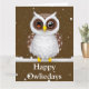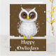 Belle chouette vintage de neige "Happy Owlieday" carte de voeux pliée avec texte de salutation cool à l'intérieur. Cette carte est fournie avec l'option de personnalisation de nom pour vous et vos proches.