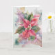 Une belle aquarelle représentant un plante poinsettia présente des feuilles rouges et verts vibrants, accentués par des touches douces de rose et de blanc. L'arrière - plan se transforme en pastels doux, rehaussant le caractère délicat et festif de la composition.
