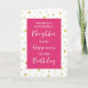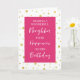 Carte d'anniversaire pour voisin avec pois fuchsia rose, blanc et or motif et verset réfléchi.