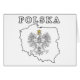 Design simple avec une carte contour de la Pologne avec l'aigle blanc polonais, les armoiries ou l'armoiries de la Pologne au centre. Le mot Polska est au-dessus de la carte.