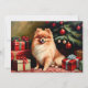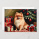 Pomeranian dog sitting by the decorated Christmas tree. Merry Christmas!