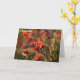 L'avant de cette carte a une image de pavots rouges dans un champ, et à l'intérieur a le fameux poème de guerre En Flandre Champs de John McCrae : En Flandre champs les pavots soufflent Entre les croix, rang sur rang, Qui marque notre place; et dans le ciel Les larves, encore bravement chantant, volent Scarce entendue au milieu des fusils ci-dessous. Nous sommes les morts. Il ya quelques jours Nous avons vécu, senti l'aube, vu le coucher du soleil luisant, Aimé, et ont été aimés, et maintenant nous sommes couchés dans les champs de Flandre. Reprenez notre querelle avec l'ennemi : Pour vous de mains défaillantes, nous jetons le flambeau; soyez le vôtre pour le tenir haut. Si vous rompez la foi avec nous qui mourons Nous ne dormirons pas, bien que des pavots poussent dans les champs de Flandre. John McCrae était médecin militaire pendant la Première Guerre mondiale et travaillait dans les tranchées près d'Ypres, en Belgique (traditionnellement appelé Flandre), s'occupant de soldats blessés. Il a écrit le poème après la mort de son meilleur ami. Les soldats décédés ont été placés dans des tombes improvisées avec de simples croix en bois sur le champ de bataille, où des pavots sauvages ont commencé à fleurir entre les croix. Le pavot est le symbole du souvenir de la Première Guerre mondiale.
