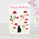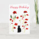 Carte Poppy Cute Chat noir Floral