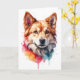 Portrait de chien à l'aquarelle avec éclaboussures d'art rouge, orange, bleu, violet. Carte de vœux vierge pour anniversaire, anniversaire de mariage, nouveau bébé, merci, condoléances, etc.