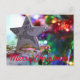 Carte postale étoile de Noël avec rennes. Arbre de Noël et lumières de Noël dans l'arrière - plan.