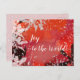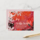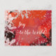 Joie au monde ! Carte de Noël. Peinture moderne aux teintes rouges et feuilles gelées