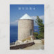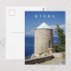 Une belle vue sur un moulin à vent sur l'île de Hydra en Grèce imprimé sur une carte postale.