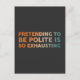 Montrez votre côté humoristique avec ce tee-shirt spirituel, parfait pour ceux qui trouvent épuisant de faire semblant d'être polis. Idéal pour les introvertis et tous ceux qui apprécient l'honnêteté, cette chemise capture la lutte des politesses sociales. Portez-le fièrement et faites savoir à tout le monde que vous êtes pour la vérité