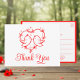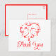 Cette charmante carte postale d'inséparables est un moyen délicieux d'exprimer votre gratitude. L'illustration délicate de cœur rouge, associée à la palette de couleurs simple rouge et blanc, crée une apparence douce et romantique parfaite pour les mariages en plein air en été ou les célébrations de jardin au printemps. Idéale pour les amoureux de la nature, cette conception combine des éléments boho avec une adorable illustration d'oiseaux. C'est une façon charmante d'envoyer vos remerciements avec une touche d'amour supplémentaire. Cette carte peut également être personnalisée pour divers événements.