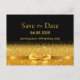 Elégant, classique, glamour et féminin style 100e anniversaire fête enregistrer la carte postale date. Un ruban et un arc de couleur or. Arrière - plan noir. Avec le texte : Enregistrer la Date sur l'avant écrite avec des lettres bloc modernes. Modèles pour la date et le nom/le texte.