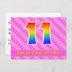Carte Postale 11e anniversaire : rayures roses et cœurs, arc-en-