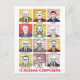 Portraits de 12 compositeurs russes, dont : Balakirev, Borodin, Glinka, Khachaturian, Mussorgsky, Prokofiev, Rachmaninoff, Rimsky-Korsakov, Scriabin, Shostakovich, Stravinsky et bien sûr Tchaïkovski.