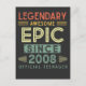 Carte Postale 13e anniversaire légendaire 2008 Officiel Adolesce