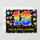 Carte Postale 13e anniversaire : motif de cœurs amusants, arc-en