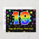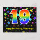 Carte Postale 19e Anniversaire : motif d'étoiles amusantes, arc-