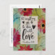 Carte postale avec citation inspirante L'écriture chrétienne représente une aquarelle florale abstraite avec fleurs roses et noires sur un arrière - plan vert. Il présente une Bible Verse bien-aimée de 1 Corinthiens 16 14, "laissez tout ce que vous faites se faire avec amour." L'Écriture intérieure de Jean 15:12, "Aimez-vous les uns les autres comme je vous ai aimés." La salutation, la prière peut être personnalisée ou supprimé pour un message manuscrit.