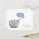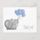 Personnalisé 1er anniversaire merci illustré carte postale d'éléphant garçon. La conception montre un éléphant portant des ballons bleus avec le numéro 1. L'âge et le message peuvent être personnalisés selon vos besoins. La meilleure façon de remercier la famille, comme les grands-parents, et les amis pour le cadeau d'un fils après son premier anniversaire.