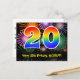 L'avant de cette carte postale thématique d'anniversaire passionnante, amusante et colorée présente un grand nombre "20" avec un motif inspiré d'un dégradé de spectre d'arc-en-ciel. Elle comporte également le message "Joyeux 20e anniversaire" et un nom de destinataire personnalisé. L'avant présente en outre un motif de fond coloré et vibrant inspiré de l'apparence de feux d'artifice de célébration éclatés. Le dos comporte un message de vœux d'anniversaire personnalisé, ou pourrait éventuellement être effacé et laissé vide si un message doit être écrit à la main à la place. Une carte postale d'anniversaire personnalisable comme celle-ci pourrait être un moyen amusant d'envoyer un message pour célébrer le vingtième anniversaire de quelqu'un. Des cartes postales comme celle-ci pourraient également être utilisées pour inviter des