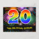 Carte Postale 20e Anniversaire – Motif de feux d'artifice amusan