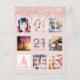 Une invitation pour une fête de 21ème anniversaire amusante, glamour et unique, célébrant sa vie avec un collage de 8 de vos photos. Sur le devant : Personnalisez et ajoutez un nom, 21 ans et la date du parti. Lettres gris et rose foncé de couleur or. Elégante et tendance couleur arrière - plan rose vif. Décoré de gouttes de parties scintillant en faux or rose. Texte : Légal et encouragements écrits sur les photos comme filigranes. Retour : détails de la fête