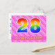 L'avant de cette carte postale joyeuse et festive à l'occasion d'un anniversaire présente un grand nombre "28" avec un motif inspiré d'un dégradé de spectre d'arc-en-ciel, ainsi que le message "Joyeux 28e anniversaire" et un nom de destinataire personnalisable. L'avant présente également un motif joyeux composé de cœurs et de rayures de couleur rose foncé et rose clair. Le verso comporte un message de vœux d'anniversaire personnalisable, ou pourrait éventuellement être effacé et laissé vierge si un message doit être écrit à la main à la place. Une carte postale d'anniversaire personnalisable comme celle-ci pourrait être un moyen amusant de célébrer le vingt-huitième anniversaire de quelqu'un. Des cartes postales comme celle-ci pourraient également être utilisées pour inviter des invités à une fête d'anniversaire organisée pour quelqu'un